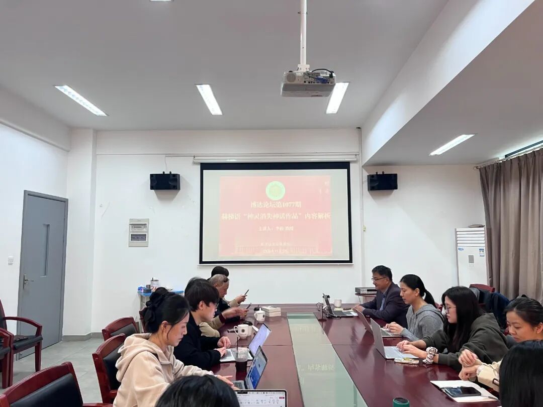 11月7日下午,我校第1077期博达论坛在融C401会议室顺利举行。本次论坛特邀北京大学外国语学院李政教授担任主讲嘉宾,讲座主题为《赫梯语“神灵消失神话作品”内容解析》,相关学院师生参加讲座。