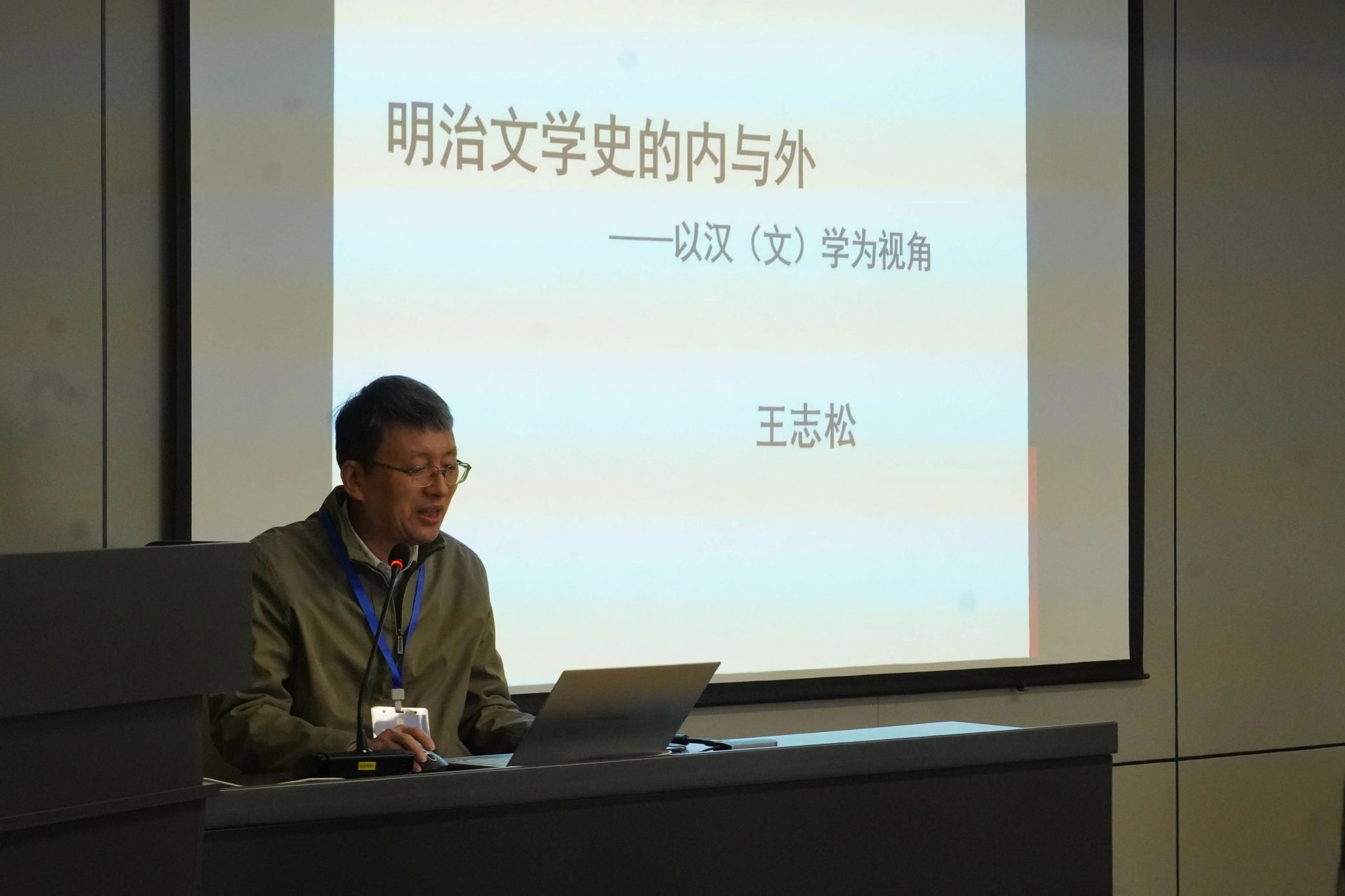 在主旨发言环节,重庆大学外国语学院教授、教育部高等学校日语专业教学指导分委员会委员王志松教授以“明治文学史的内与外——以汉(文)学为视角”为题,系统阐释了汉文学在东亚现代文学形成进程中的独特价值与核心地位,为东亚文学研究提供了全新的历史坐标系。