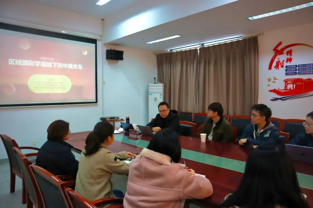 张宇权教授指出,当前中美关系在短期内因美国国内政治周期和选举考量而维持相对稳定;中期则受俄乌冲突走向、盟友协调机制等因素影响,存在较大不确定性;而从长期看,随着结构性权力转移的深化,两国已进入刚性竞争的新阶段。尽管美方表面上推行“战略收缩”,实则正加快构建排华供应链与安全联盟网络,力图遏制中国在高科技领域的崛起。在此背景下,他鼓励师生聚焦特定国别(如老挝、越南、韩国等),围绕“一带一路”倡议、中国—东盟合作、半导体产业链安全等关键议题,开展兼具学术深度与政策价值的研究。