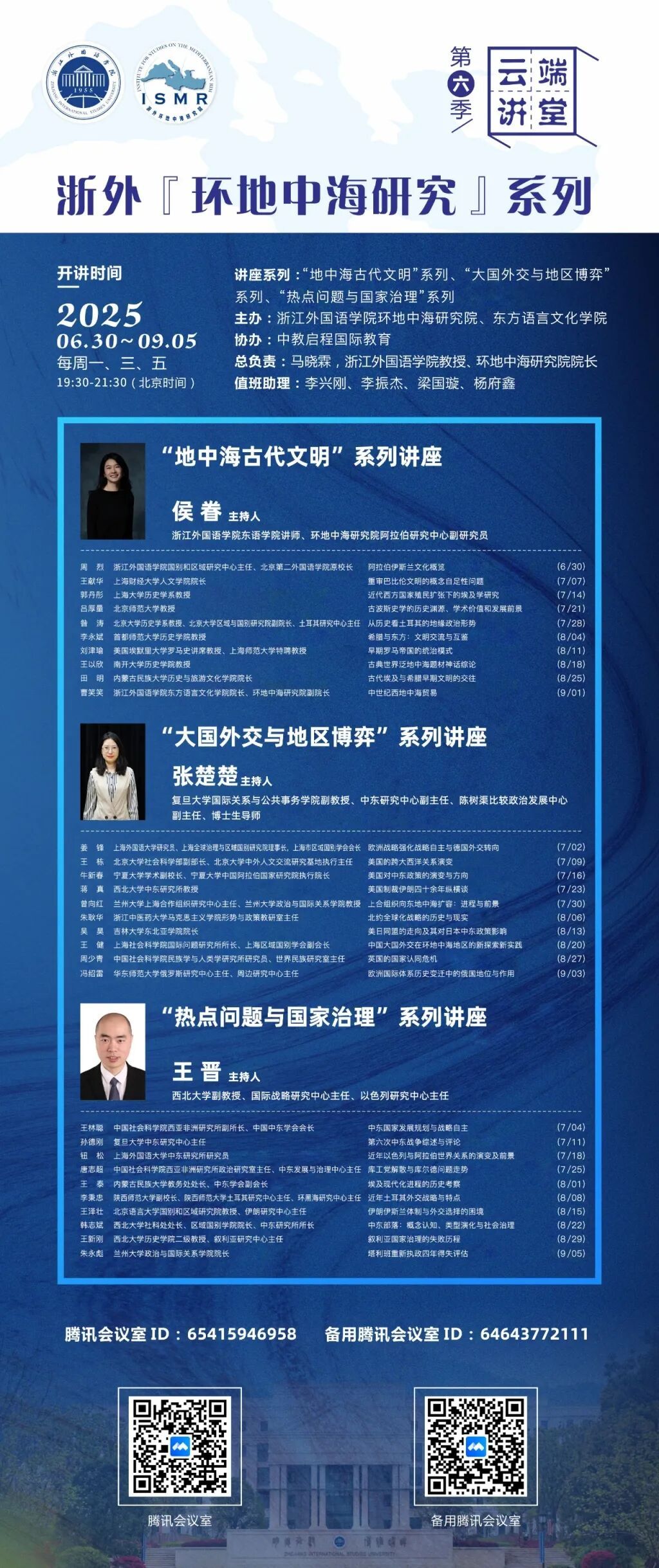 院长曹笑笑总体负责。未来,讲堂将继续深耕区域国别研究,激发校内外学者对区域国别研究的热情,进一步扩大浙外学术品牌的影响力,为推动中国“环地中海学”学科体系建设贡献浙外力量。