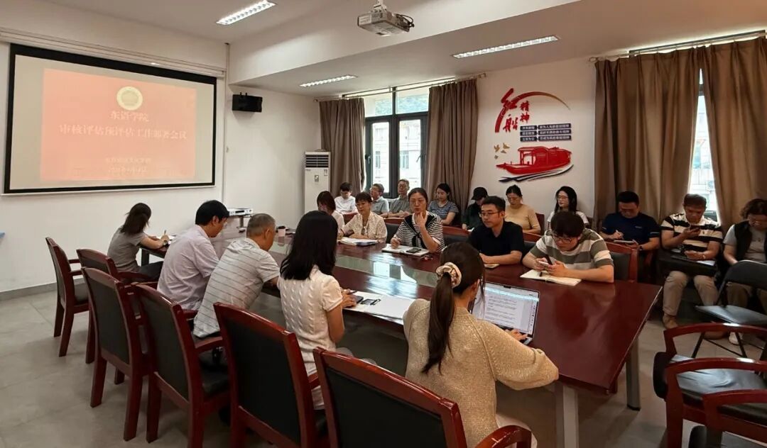 于融院C401会议室召开本科教育教学审核评估预评估动员部署会。会议由学院院长曹笑笑主持,全体教职工参会。