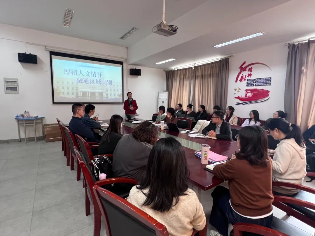党委副书记宋洋介绍“四课堂”联动育人举措,包括拓展校内学习资源、依托实践基地与志愿服务提升素养、搭建海外交流平台等,要求班主任通过主题班会组织学生学习评估应知应会知识。