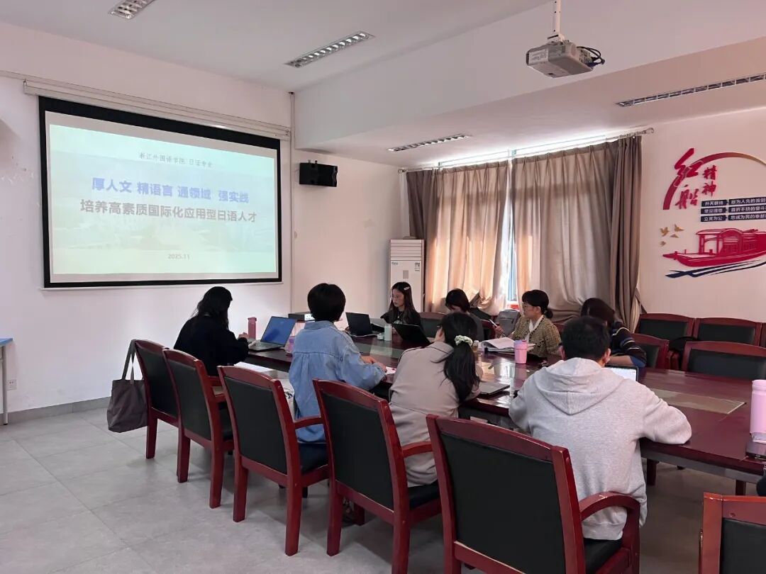 院长曹笑笑聚焦人才培养,展示国一流、省一流本科专业建设点及省级新兴特色专业建设成果,详解“立足浙江,服务长三角,面向全国”的培养导向与“厚人文、精语言、通国别、强实践”的人才培养体系,强调通过思政育人体系与“四课堂联动”实践机制,培育复合型国际化人才。