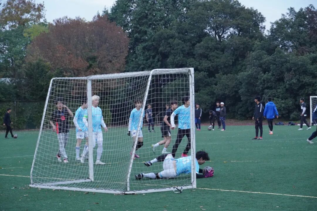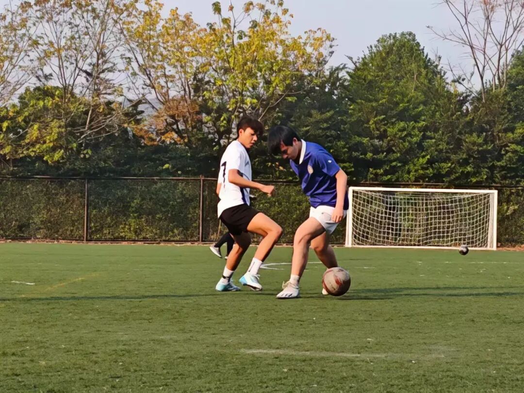 同日,第二场对阵国际学院足球队。带着上一场平局的韧劲,队员们上场前互相鼓劲,士气拉满。队友间配合默契,面对对手凌厉进攻毫不畏惧;门将林敬煊屡次高接低挡,化解险情;薛添熙突破防守,单挑门将得分。终场的哨声响起,我方虽未能取胜,却收获了友谊。
