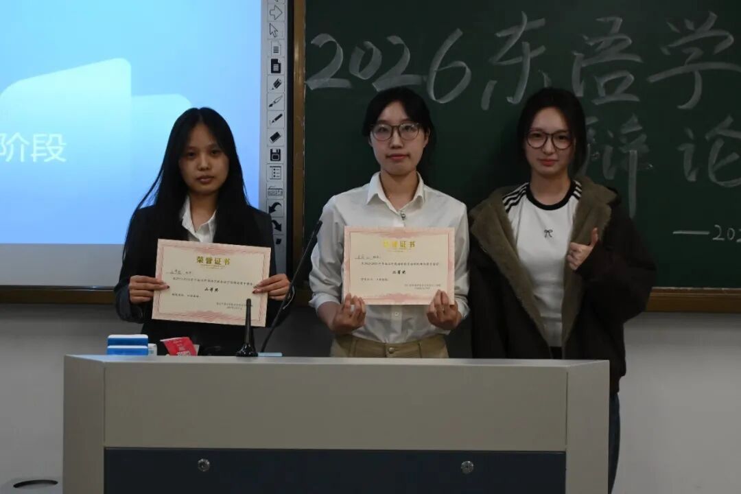 比赛结束后,评委们为辩手们的精彩表现现场打分,并作出专业而精辟的点评。根据评委打分结果,最终奖项揭晓:吕姿乐同学荣获一等奖,王梦瑶、王舒涵同学荣获二等奖,胡嘉尹、程柯语同学荣获三等奖。
