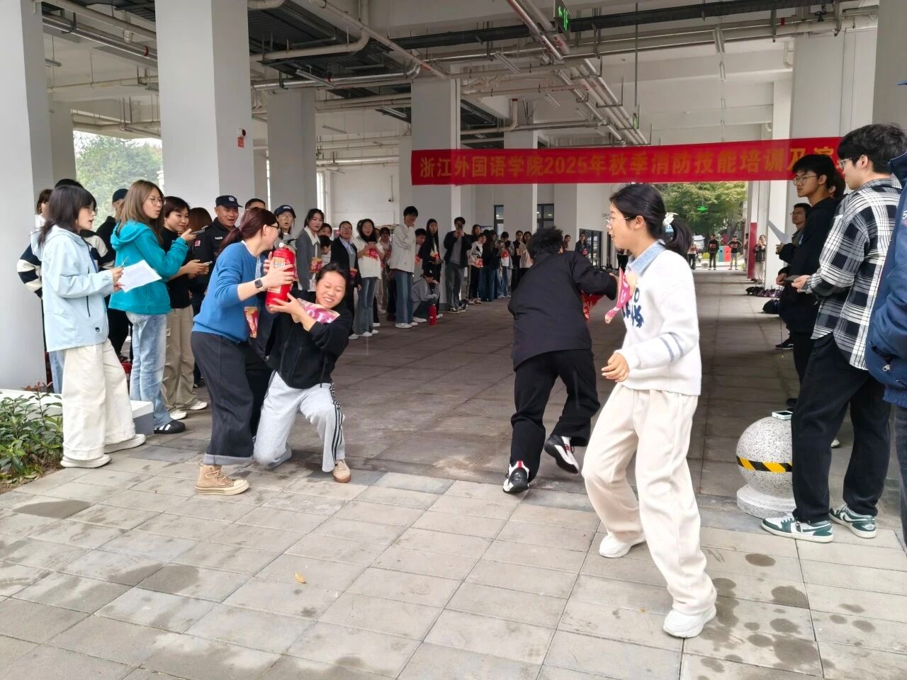 为切实筑牢校园消防安全防线,贯彻落实消防安全宣传月相关要求,冲刺5A平安校园,11月6日,在留下消防救援站、派出所共同指导下,学校安保部、工会、校团委联合开展趣味消防知识技能竞赛。来自全校的26支参赛队伍齐聚赛场,围绕“消防灭火接力跑”“消防对对碰”“安全知识越野跑”三大核心项目展开激烈角逐。