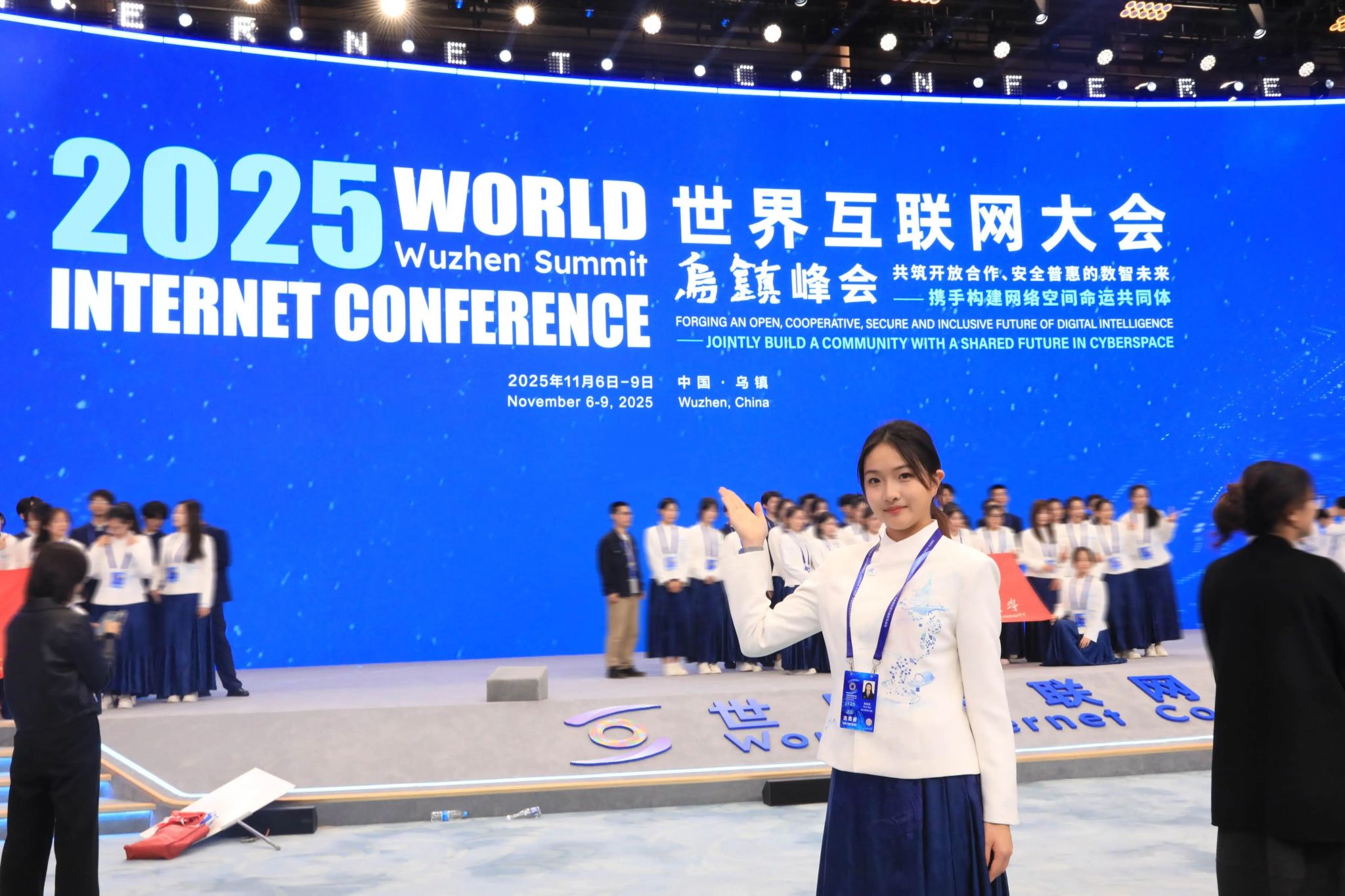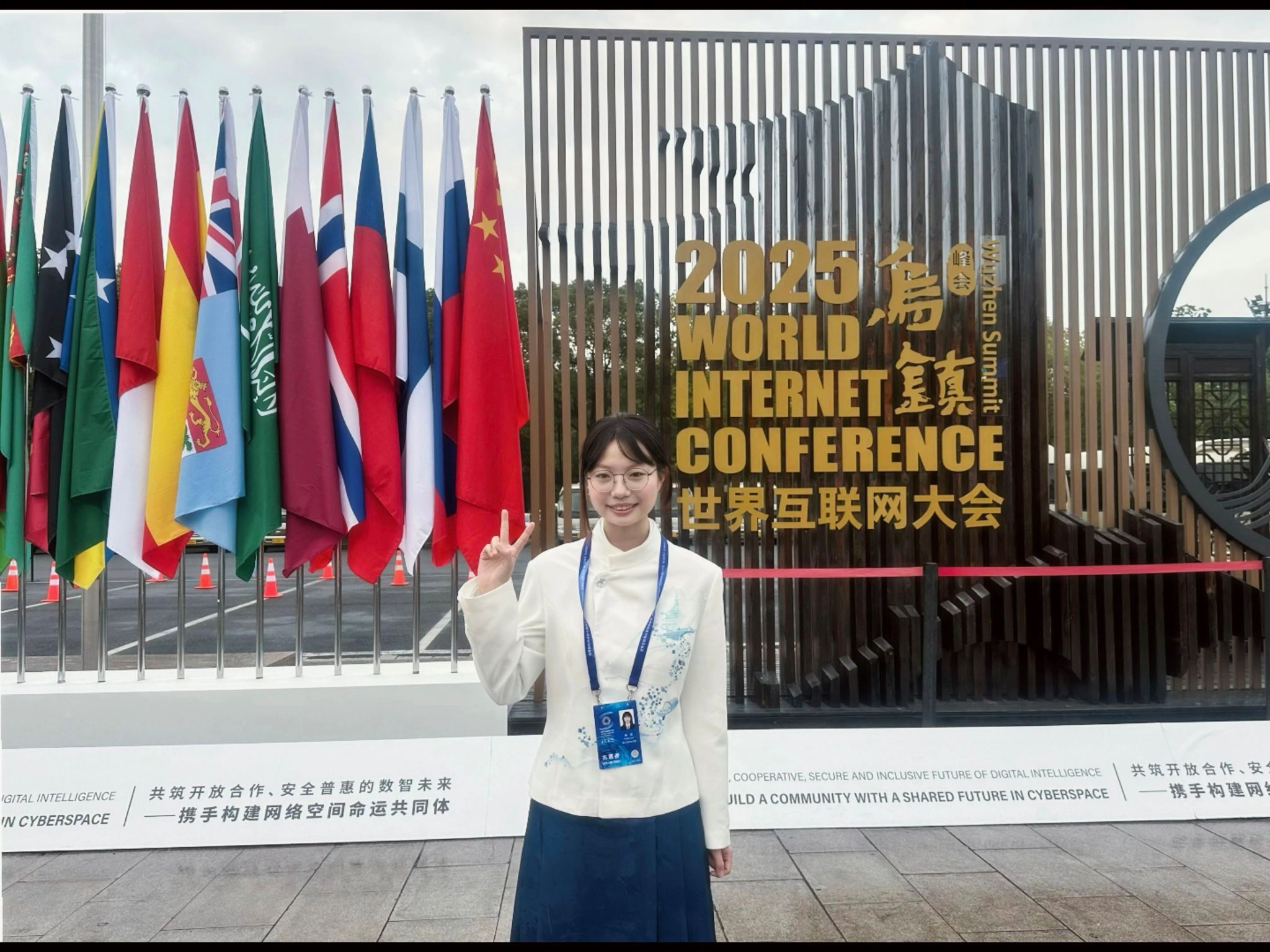这是杨璨第一次参与世界互联网大会志愿服务,乌镇之行让她真切感受到科技与人文交融的温度与力量。尽管原定对接的嘉宾临时取消行程,但她并未懈怠,与小伙伴们每天在景区内行走两万余步,逐一提炼场馆、酒店及各类设施的位置信息并熟记于心,只为在嘉宾需要时提供最及时、准确的帮助。一个雨天的傍晚,杨璨在便利店门口遇见一位等待接引的香港嘉宾,她主动撑起雨伞,护送嘉宾返回酒店,途中还热情地为嘉宾介绍了乌镇特色萝卜丝饼。嘉宾感慨道,这是她第一次参加峰会,却被大会严谨的组织和志愿者细致的服务深深打动,直言明年必定再来。这段独特的志愿服务经历,将持续激励她在成长道路上勇毅前行。