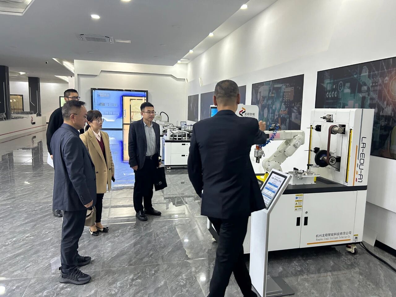 党委书记夏颐、党委副书记宋洋、学术副院长孙霁一行,在浙江长征职业技术学院智能技术学院教师贺双旭陪同下,赴杭州龙砺智能科技有限公司开展调研交流。杭州龙砺智能科技有限公司董事长金忠豪、副总经理金业成等热情接待澳门六合彩内幕资料