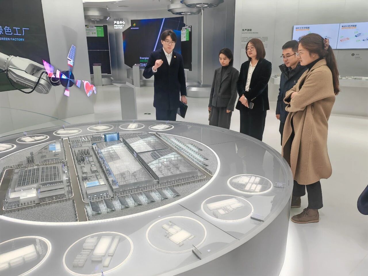 一行先后参观了正泰新能创新中心、透明数字化车间等核心区域,近距离观摩了光伏组件从切片、电池生产到成品组装的全流程智能化生产场景,对企业的技术实力与发展理念有了更直观、深入的了解。