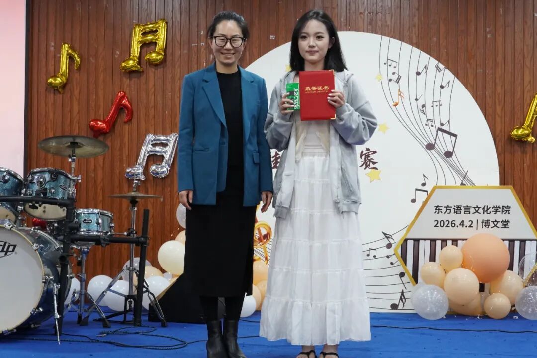 校团委书记陈超出席活动并为获奖选手颁奖,学院党委副书记宋洋,国际处主管田湉,韩语系外籍教师金洙京,辅导员蔡胜、苏宣丞担任本次比赛评委。比赛采用单轮赛制,分上下半场进行,每位选手倾情演绎一首曲目,评委从演唱技巧、舞台表现、情感表达等方面综合打分,评定各等级奖项。